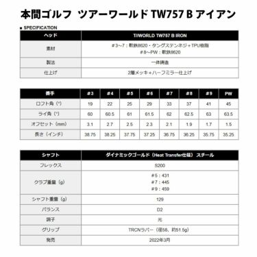 本間ゴルフ ツアーワールド TW767 ドライバー + TW757 B マッスルバック アイアン メンズ ゴルフクラブセットの商品情報