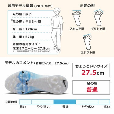 インフィニティ ツアー 2が、従来モデルからレベルアップ。スパイクを増やし、フォームを改良して、Air Zoomユニットを薄くしました。すべては、ボールの落下地点を指さし、ピンに向かって悠々と歩くため。次のラウンドでどんなプレーが待ち受けていようとも、抜群の反発力と履き心地で、準備は万端です。防水性に優れたGORE-TEXアッパーが水をシャットアウトし、コース上で足をさらりとした状態にキープします。スパイクを強化スパイクを前足部に2つ追加。合計6つになった一体型スパイクで、優れたグリップを実現。スパイクをAir Zoomユニットの下に配置。エネルギーリターンが向上し、ラウンド中の履き心地がさらに快適に。地面に近い安定した履き心地Air Zoomユニットの接地感を高め、ホールを回る際も、反発力を損ねることなく優れた安定性を発揮。安定したスイングミッドソールのフォームを改良し、足裏全体にワンランク上の安定感を実現。グリーンに向かってスイングする時も、フェアウェイの真ん中を歩く時も、安定したプレーをサポート。・かかと内部のフィットポッドを改良して、履き心地と安定感をアップ。・パッド入りの履き口で快適性が向上。