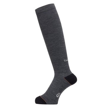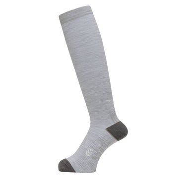 ウールの機能を生かしながら、C3fit独自のサポート構造を搭載したトレッキング向けソックス。春夏シーズンでも使いやすい薄手タイプのハイソックスです。ウールをメインにした素材は、吸放湿性が高いため不快なムレを軽減でき、汗冷えもしにくいのが特長。長時間履いてもにおいにくいのも魅力です。レッグ部分は程よい締め付け感のリブ仕様で、履き口はゴムを入れず柔らかな履き心地に仕上げました。足裏は凹凸感のある特殊なパイル構造で、点接触になるため快適性がアップ。かかと部分は編み組織を変えて補強しています。足裏にある縦のアーチ(土踏まず部分)の編み組織を変えることで、サポート力が向上。アーチを支えて崩れを抑えられ、脚にかかる衝撃を吸収します。足首からふくらはぎにかけて、着圧設計を採用しているのも特徴的。着圧設計ならではの心地よい引き締め感が得られます。