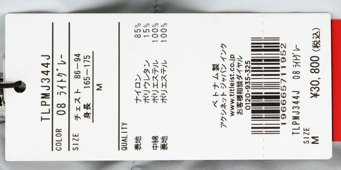 タイトリスト Titleist メンズ 撥水 防風 中綿入り 長袖 フルジップ ブルゾン TLPMJ344J 2024年モデル