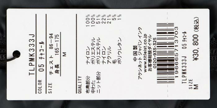 タイトリスト Titleist メンズ 撥水 生地切替 ニット 中綿入り 長袖 フルジップ ブルゾン TLPMK333J 2024年モデル