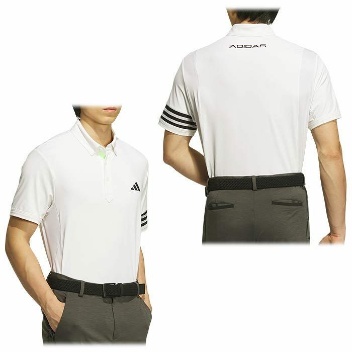 アディダス adidas メンズ スリーストライプス メッシュ切替 ストレッチ 半袖 ボタンダウン ポロシャツ IKK68 2024年モデル
