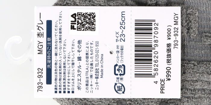 フィラ FILA レディース ロゴデザイン パイル編み アンクルソックス 793-932 MGY 杢グレー 2023年モデル