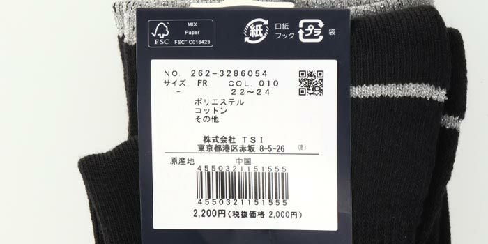 アルチビオ archivio レディース ロゴ刺繍 ストライプ ハイソックス A250302 201 ブラック