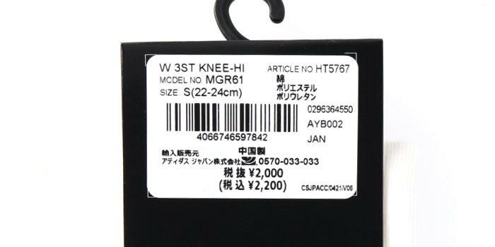 アディダス adidas レディース スリーストライプス ニーハイソックス MGR61 HT5768 ブラック/ホワイト 2023年モデル