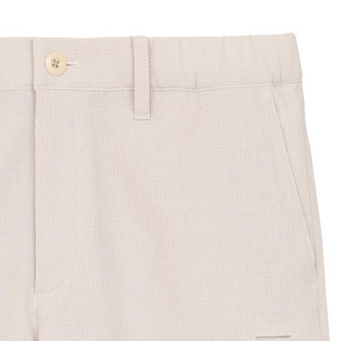 特長二重織組織で耐久性がありながらも軽量な素材を使用したショートパンツ。ウエストはゴム仕様でスピンドル付き、快適にフィット感を調整可能です。麻調の凹凸感ある表面組織により肌離れが良く、快適な穿き心地を実現。左脚にはティー刺し付きユーティリティポケットを配置し、ゴルフやタウンユースでも便利な1本です。※パンツ以外は商品に含まれません。