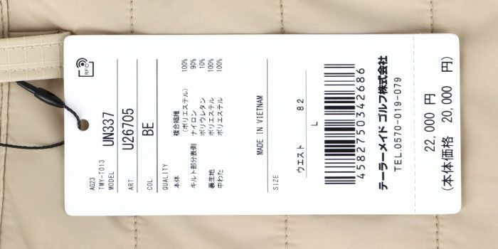 テーラーメイド TaylorMade メンズ 撥水 防風 生地切替 中綿 ストレッチ テーパード ハイブリッド ロングパンツ UN337 2024年モデル