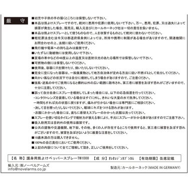クマよけ使用時の注意点スプレーを噴射すれば絶対に助かるわけではありません。あくまでも襲われる前にスプレーを噴霧して熊を遠ざけることを目的としていますので、スプレーを噴射したが回避できない場合には当社ならびにカールホーネック社、正規輸入総代理店ノーベルアームズ社は一切の責任を負えません。スプレーを噴射して必ず回避できるとは限りません。