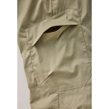 GLACIER LITE PANTと同じ生地を採用し、幅広いアクティビティで使えるリラックスフィットのパンツを創りました。製品名の由来は、スタッフが毎年楽しみにしている山菜採りです。雪解けが進むホームマウンテンで、ときに沢をへつり、藪漕ぎをする山菜採りでは、動きやすさと丈夫さが求められます。ゆとりを持たせたバギーなシルエットではきやすく、太ももにカーゴポケットを持つ5ポケット仕様で収納力も十分です。 XSから展開するジェンダーレスモデルです。