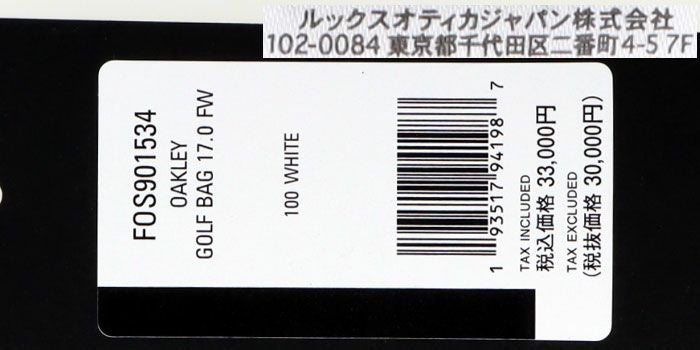 オークリー OAKLEY ロゴデザイン キャディバッグ 17.0 FOS901534 100 ホワイト 2023年モデル