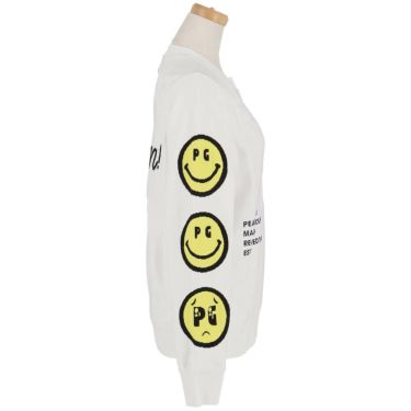 特長いつものPG SMILEに半べそ顔のぴえんなPG SMILEを入れて変化をつけた、天竺ピンタックインターシャクルーネックニットプルオーバー。斜めに入れたSwitch ONロゴや凸凹の手触りで表現したPGロゴなど、レイアウトに遊び心をプラスしたロゴや編地にも拘って豊かな表情を演出したPEARLY GATESならではの個性に仕上げた一着です。動きやさにも工夫したリラックスして着られるシルエットと、軽やかな着心地と清涼感を兼ね備えたポリエステル糸を使用。ゴルフシーンだけでなく、トレンドのシャツやデニムなどのベーシックなアイテムと合わせて、ショッピングやちょっとした外出にもおすすめです。新しくパワフルなPEARLY GATESらしい着こなしを、日常のさまざまなシーンでお楽しみください。