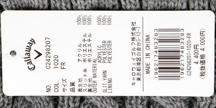 キャロウェイ Callaway レディース ケーブル編み シルバーライン ネックウォーマー C24298207 1020 グレー 2024年モデル
