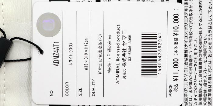 アドミラル Admiral モノグラム トートバッグ ADMZ4AT5 00 ホワイト 2024年モデル