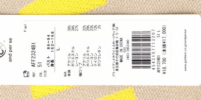 アンパスィ and per se レディース ビッグロゴ バイカラー 防風 袖裏地付き 長袖 ハイネック セーター AFF2604B4 2024年モデル